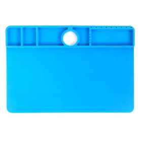 Zone de travail élargie : Offre un espace généreux pour effectuer des opérations de soudure ou de maintenance tout en protégeant efficacement le plan de travail des brûlures et des dommages. Organisation intelligente : Compartiments dédiés pour vis, composants, puces, outils et cartes mères, permettant un rangement clair et une productivité accrue. Matériau isolant haute performance : Résistant à la chaleur, aux chocs, à l’huile, à l’eau et aux acides, tout en étant facile à nettoyer. Surface antistatique et antidérapante : Réduit les risques de décharge électrostatique et assure une stabilité parfaite pendant le travail. Polyvalence professionnelle : Idéal pour les réparations de smartphones, cartes électroniques, microcomposants et plus encore.
